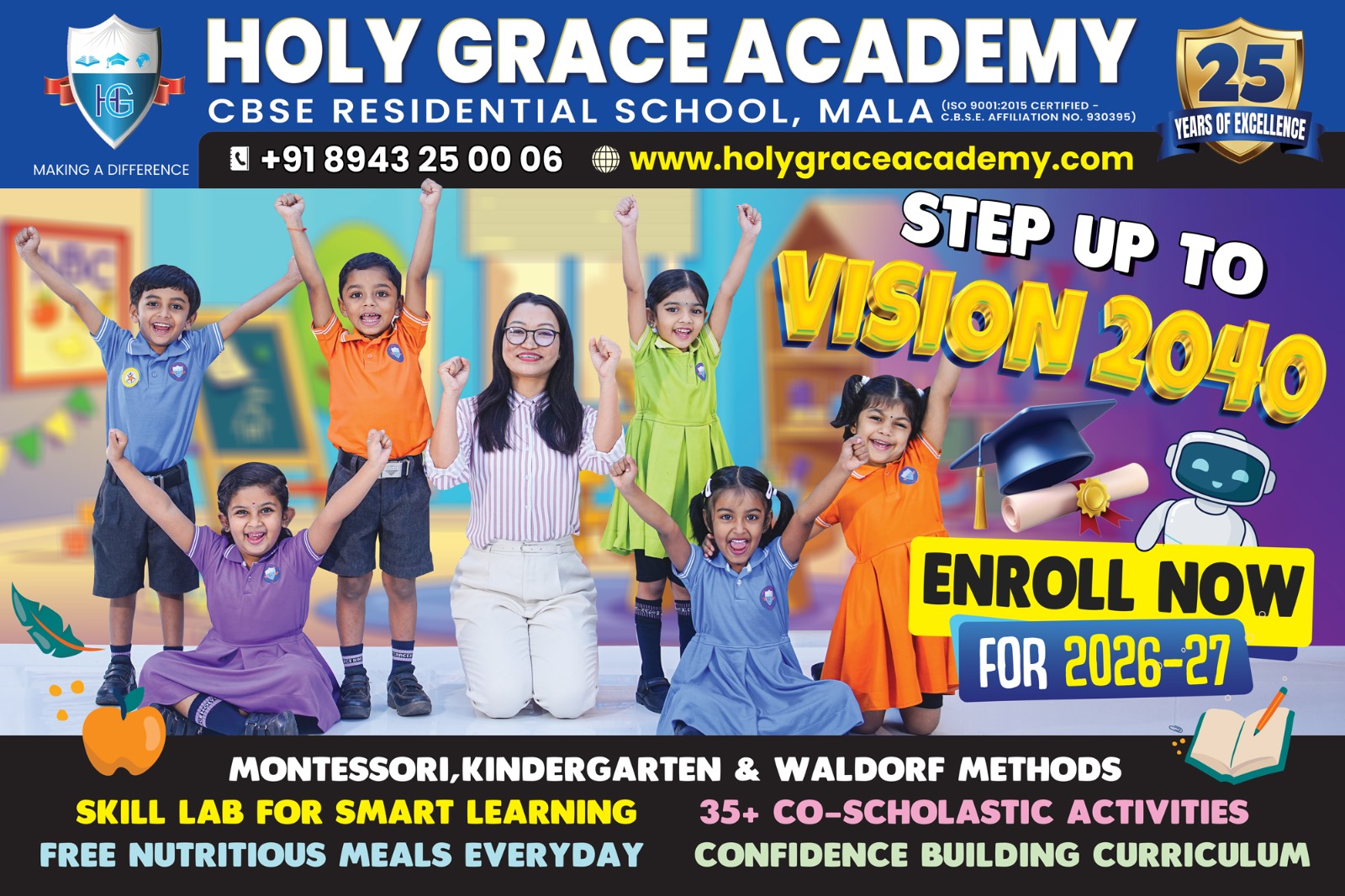 Holy Grace Academy is an English medium co-educational CBSE Residential School founded in 2000 with 135 students, 15 staff on roll and has consistently grown into a big family of around 3000 students and 300 staff as on today. The Holy Grace Academy CBSE School imparts international standards by adopting the latest methodologies, implementing innovative measures and ideas. From its inception onwards the School was successful in retaining its reputation as an educational institution with a difference by way of offering a host of features and training programs aimed at improving the academic, social, intellectual and behavioral skills of students.